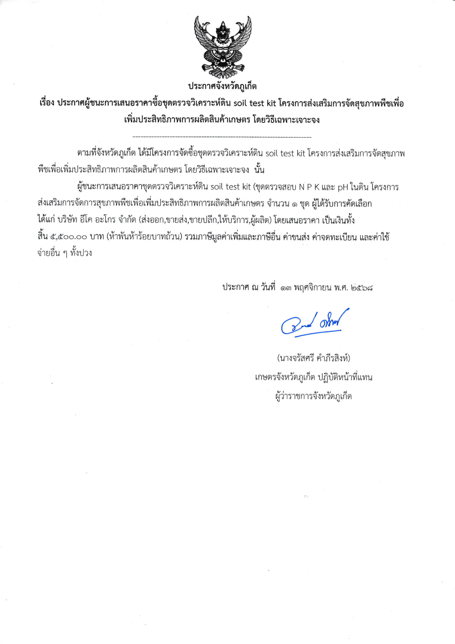 ประกาศผู้ชนะการเสนอราคาซื้อชุดตรวจวิเคราะห์ soil test kit ฯBy admin_doae / 14 พฤศจิกายน 2025 1CC57FA8-6958-42A2-922B-EB1DB1735DE5ดาวน์โหลด