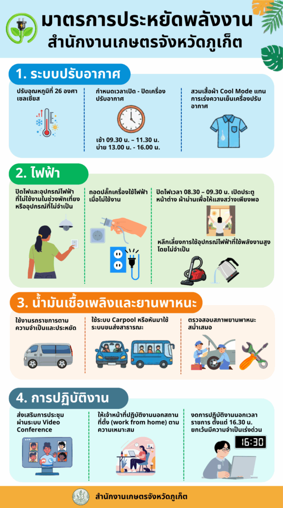 มาตรการประหยัดพลังงานมุ่งลดการใช้ไฟฟ้าและน้ำมันในหน่วยงานสำนักงานเกษตรจังหวัดภูเก็ตBy admin_doae / 26 มีนาคม 2026